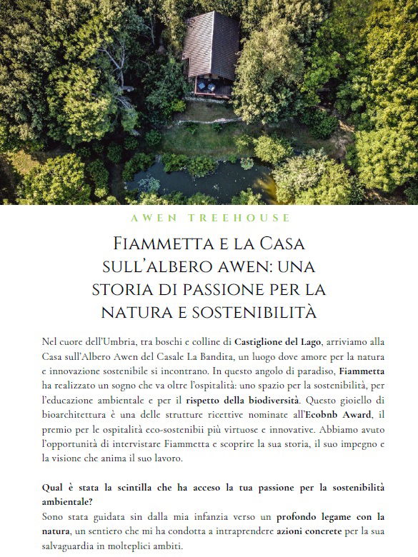 Il solstizio d'inverno ci ha donato un prezioso regalo: questo libro raccoglie le interviste ai vincitori degli Ecobnb Awards, tra cui anche la nostra Awen, protagonisti delle ospitalità sostenibili più virtuose d’Italia. Storie vere, sincere e coinvolgenti di turismo responsabile, piccoli progetti di accoglienza che rigenerano i territori e li custodiscono
